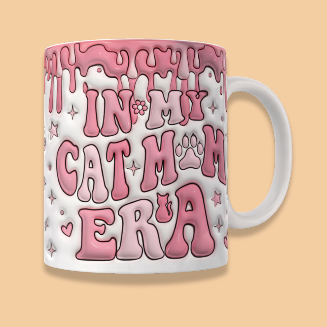 Această cană este o declarație de dragoste pentru toate femeile care își consideră pisica parte din familie. Cu mesajul „In My Cat Mom Era” și un design adorabil în nuanțe de roz, inimioare și detalii simpatice, cana celebrează legătura specială dintre tine și micuța ta blănoasă.