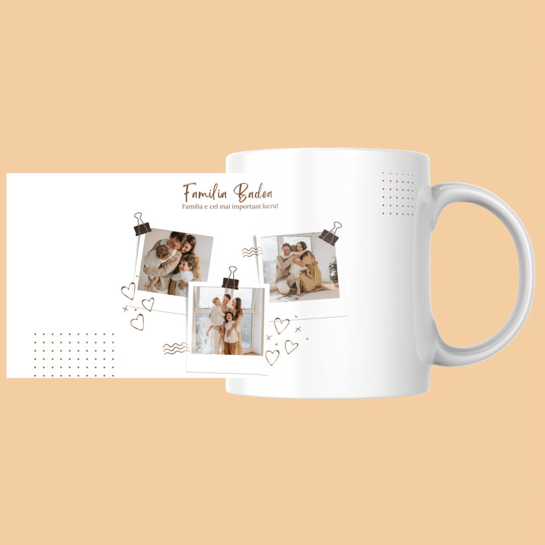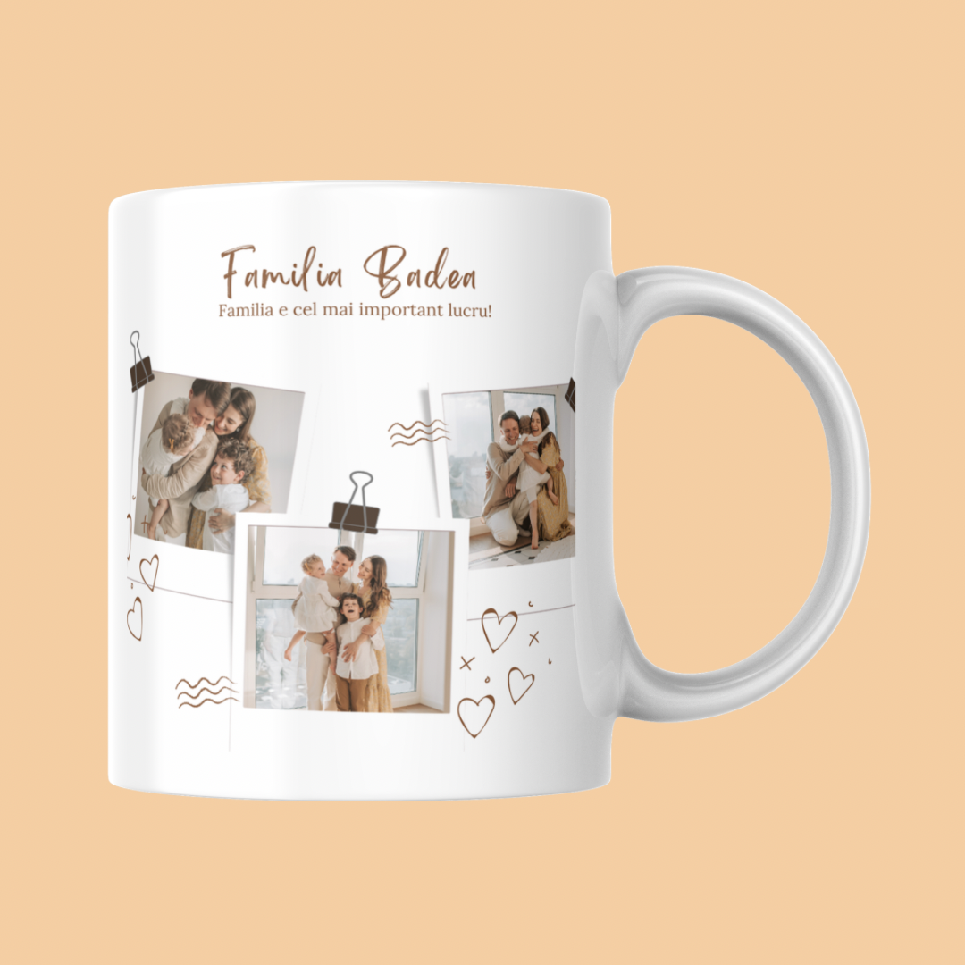 Transformă cele mai frumoase momente într-un obiect de suflet cu această cană personalizată cu fotografii și mesaj ales de tine. Fie că este vorba despre familie, cuplu, copii sau amintiri speciale, această cană spune o poveste unică, creată exact așa cum îți dorești.