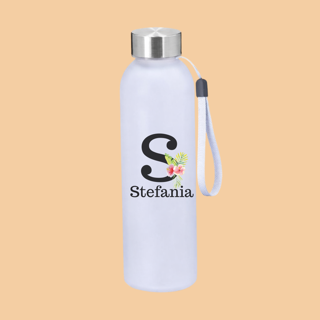 Realizată din sticlă cu finisaj frosted, cu un aspect modern și rafinat, sticla este completată de un capac din oțel inoxidabil fără BPA, sigur pentru consum și rezistent în timp. Șnurul de transport o face ușor de purtat oriunde – la birou, la sală, în mașină sau în călătorii. Fie că vrei să oferi un gest elegant sau un cadou cu valoare sentimentală, această sticlă personalizată este alegerea perfectă.
